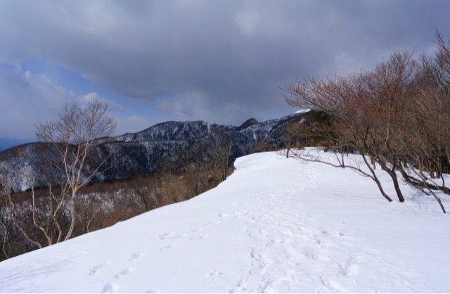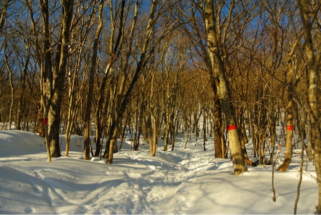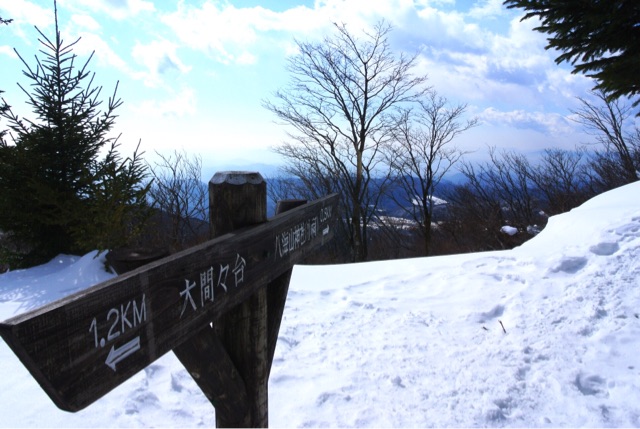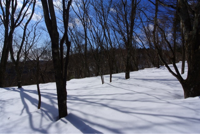 雪は締まっているので大間々台まではつぼ足でいけます。